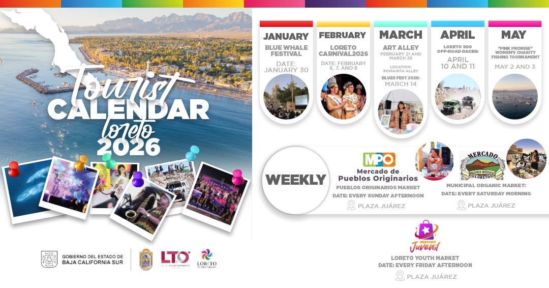 Loreto, Baja California Sur, is preparing for a 2026 filled with culture, music, nature, and traditions. From iconic festivals like the Blue Whale Festival to weekly celebrations in Plaza Juárez, this Pueblo Mágico offers a vibrant calendar for travelers seeking authentic experiences.
